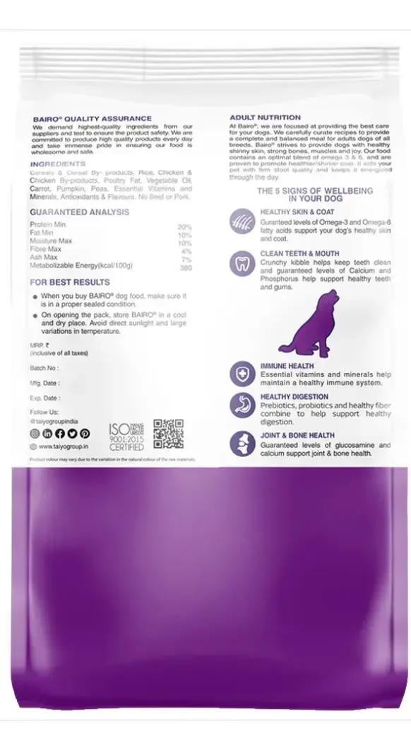 Health benefits: Bairo Chicken Veg formula is designed to promote several aspects of your dog’s health: