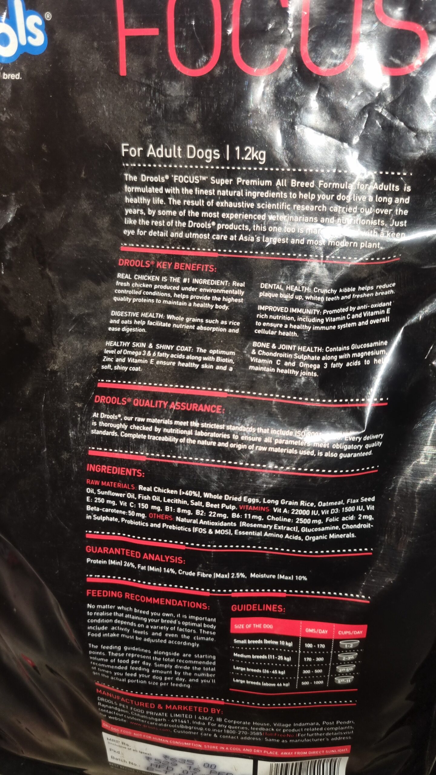 Product Description: Drools Focus Adult Dog Food (1.2kg)